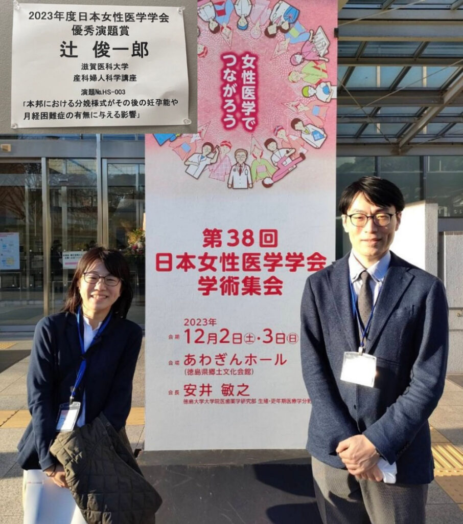 2023年12月2-3日に徳島県で行われました第38回日本女性医学学会学術集会で優秀演題賞を頂きました。本邦におけるリアルワールドデータを用いて、帝王切開が分娩後の女性のQOL(次回妊孕能や月経痛)を低下することを示唆する報告です。本研究にご協力いただきました共同研究者の先生方にこの場を借りて感謝申し上げます。