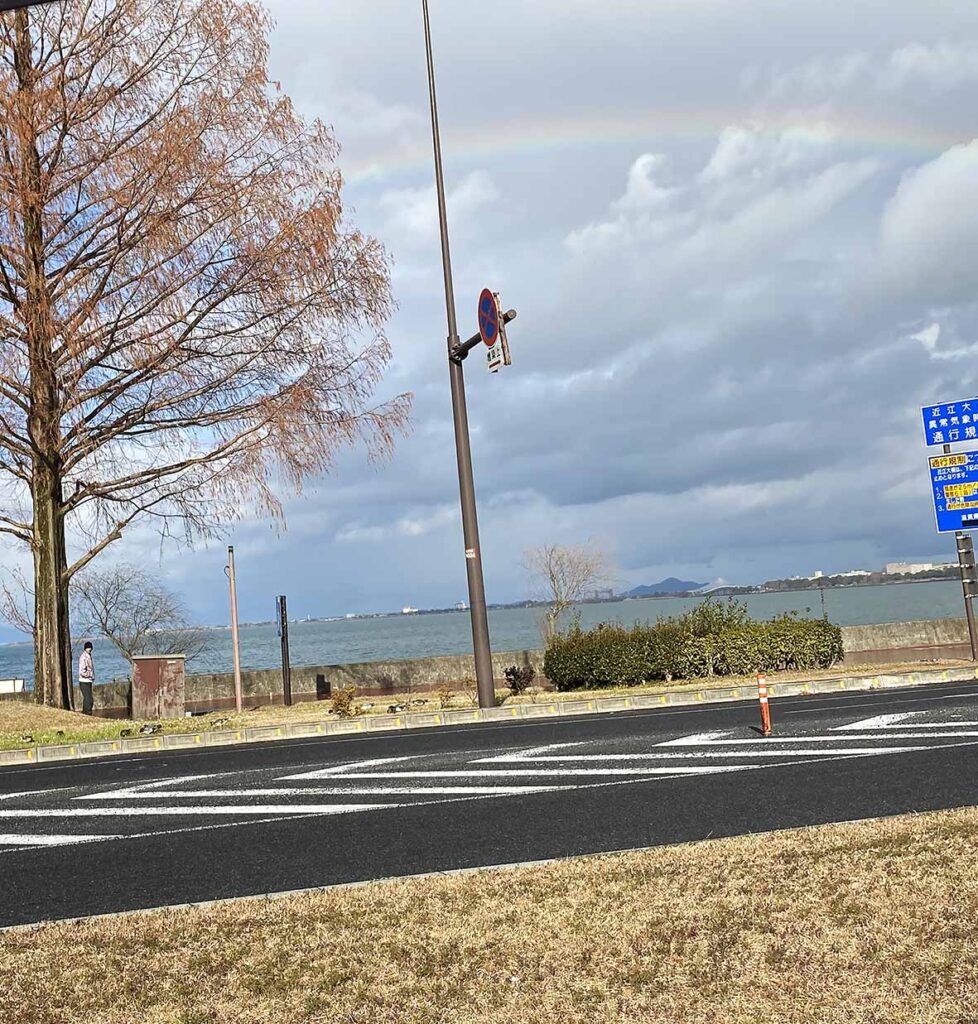 正月に琵琶湖で偶然虹を見ました。なんだかよい年になりそうです。