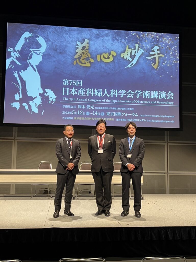 「5月12日から5月14日にかけて東京国際フォーラムで第75回日本産科婦人科学会学術講演会が開催されました。日本の産婦人科領域における最大の学術講演会で年1回開催されます。新型コロナウイルス感染症も5類に引き下げられたこともあり、現地参加される方も以前のように多く盛況となりました。今年は、当院の高橋顕雅先生がJSOG (Japan Society of Obstetrics and Gynecology) Congress Encouragement Awardを受賞いたしました。昨年は大橋先生が同じ賞を受賞しており、滋賀医大は2年連続の受賞となりました。これを励みに今後も邁進していきたいと思います。」